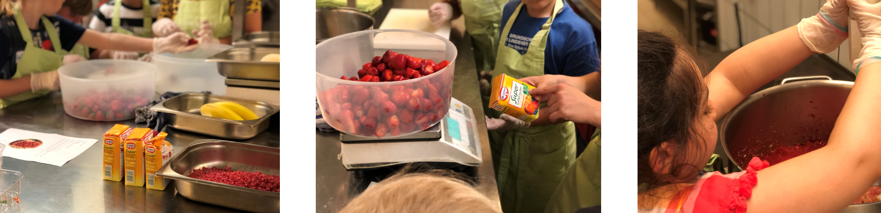 Nach der erfolgreichen Pflückaktion auf den Erdbeerhof war nun eine Gruppe unserer Kinder im Courtyard by Marriott zu Gast, um die Früchte zu einer leckeren Marmelade zu verarbeiten. Dieses Mal nahmen Kinder aus dem 3. Jahrgang einer Grundschule teil. Alle genossen das Marmelade kochen in der Hotelküche und das anschließende Nudelessen im Hotelrestaurant. Jeder durfte natürlich auch wieder jeweils ein Glas der selbstgekochten Erdbeer- und Himbeermarmelade mit nach Haus nehmen. Danke für diesen schönen Nachmittag!