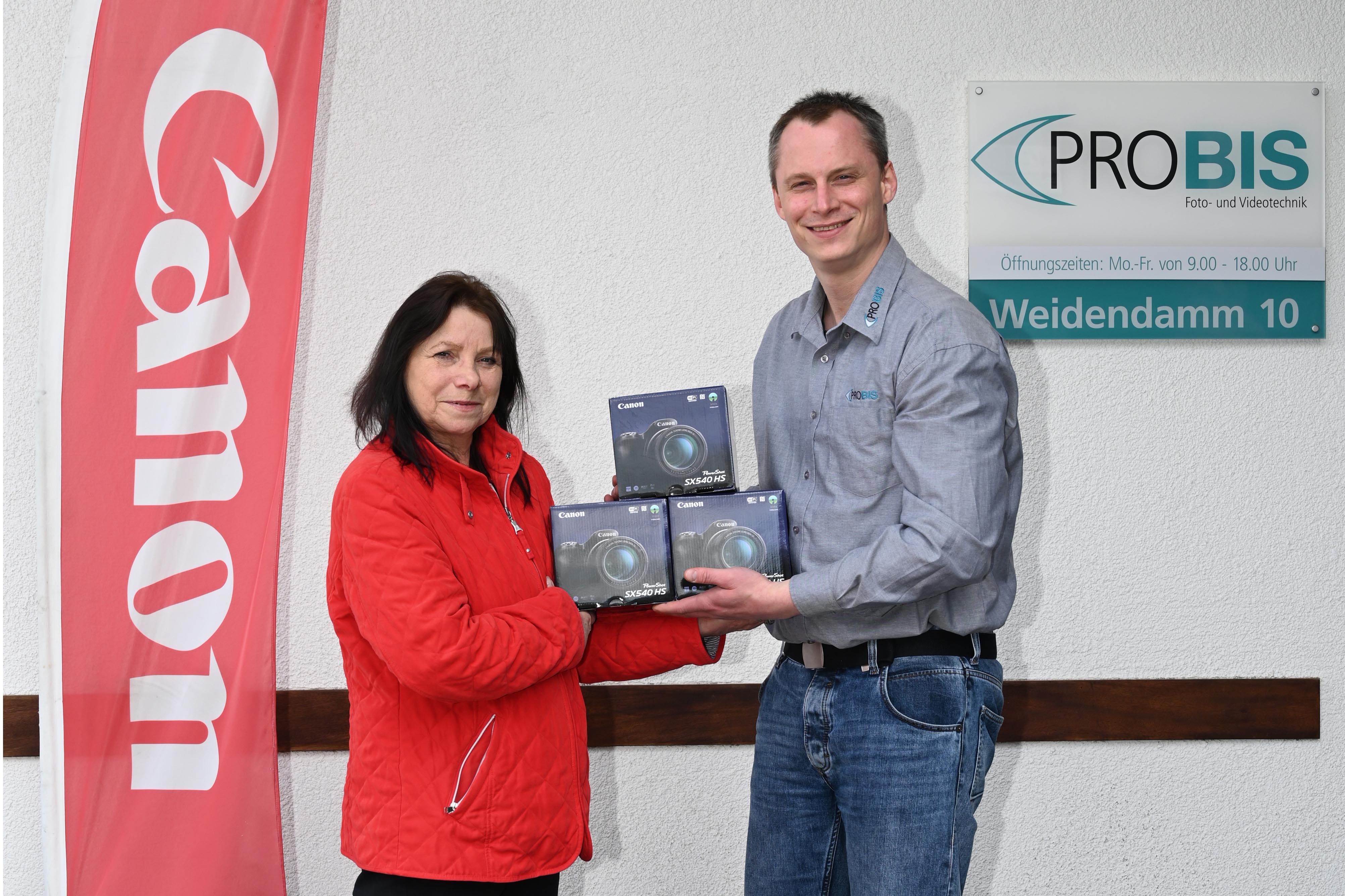Jetzt kann es los gehen! Die benötigten Digitalkameras für unser Projekt "Entdecke dein Hannover" sind da. Diese überreichte uns der Filialleiter von Probis Hannover, Christian Weber, am Dienstag. Wir möchten ProbisFotohandel und Canon Deutschland recht herzlich für die Unterstützung unseres Projekts danken! Auf diesem Wege möchten wir auch nochmal allen weitere Unterstützern danken, die das Zustandekommen des Projektes erst möglich gemacht haben. Wir freuen uns jetzt auf die Fototour der Kinder und werden Euch/Sie auf dem Laufenden halten.